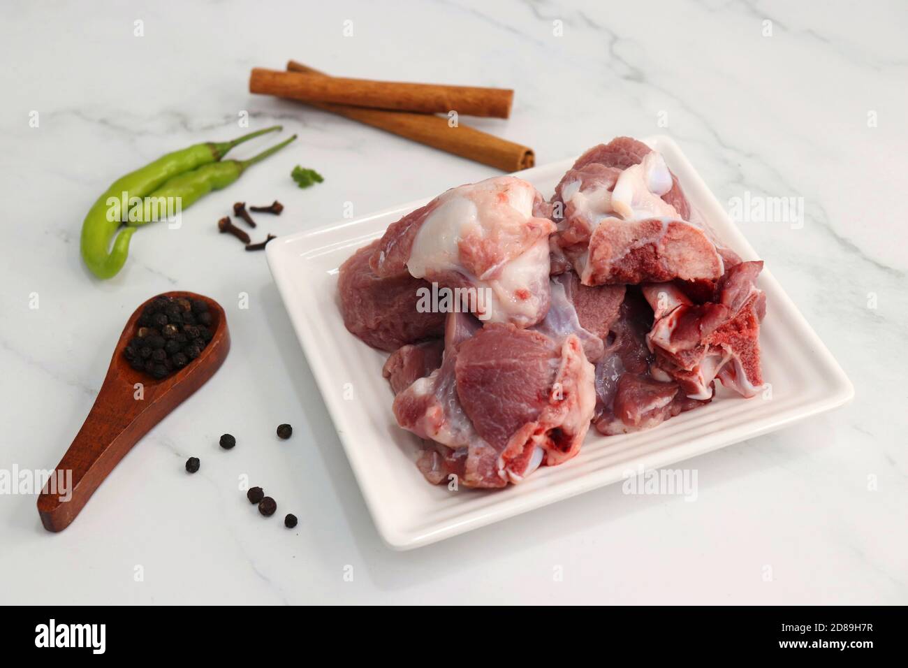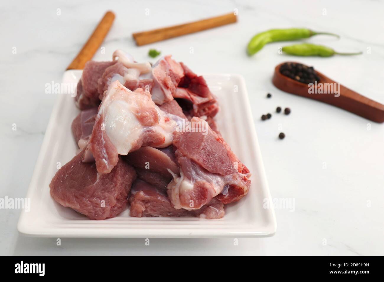 Frisches rohes Ziegenfleisch oder Hammelfleisch oder Lammstücke ...