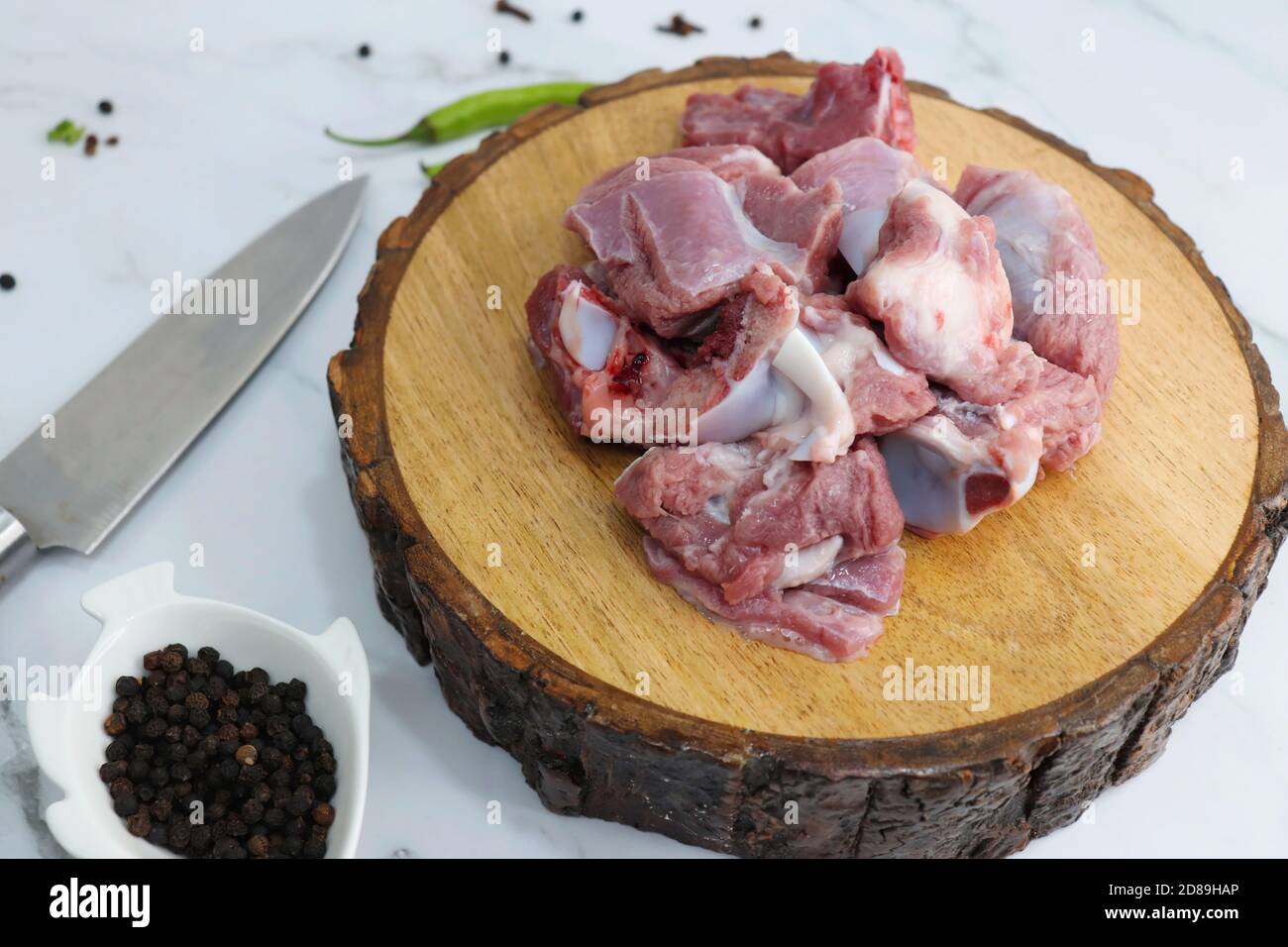 Frisches, rohes, ungekochtes Ziegenfleisch oder Hammel- oder ...