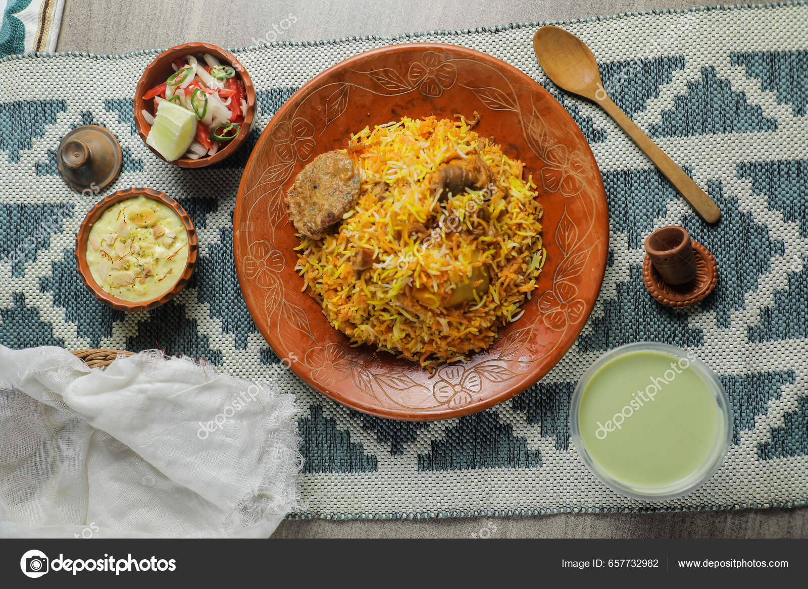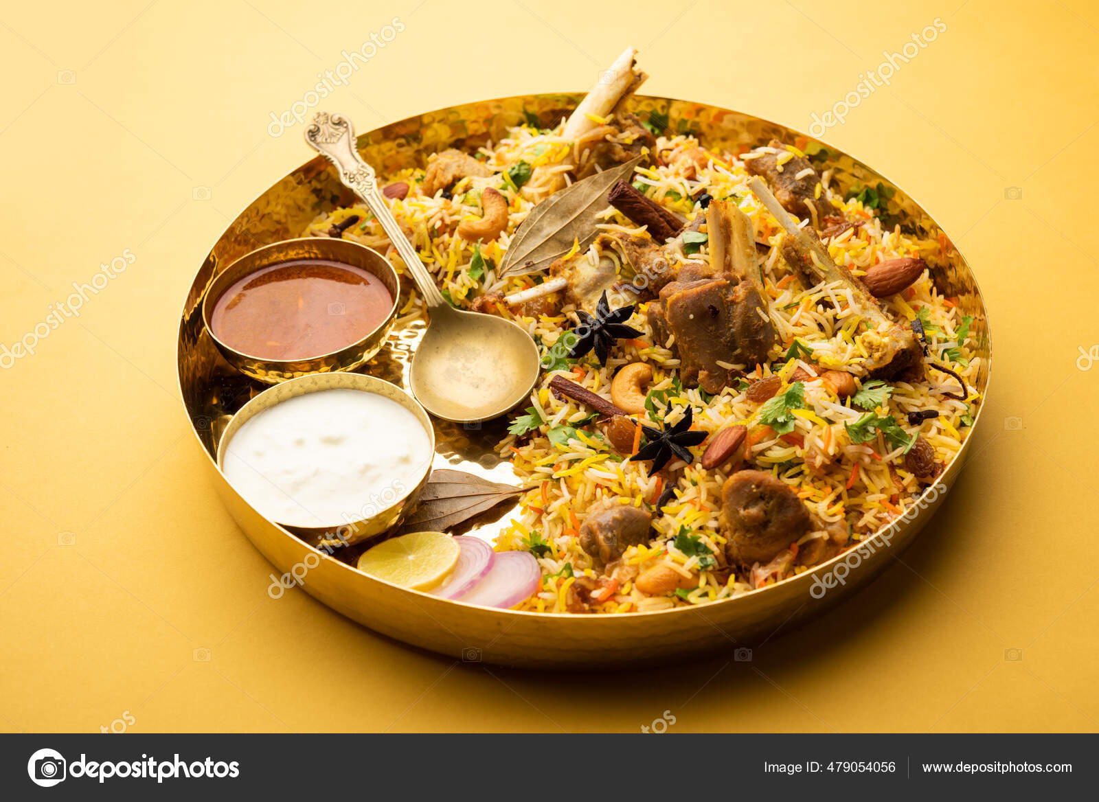 Hammelfleisch Kacchi Biryani Mit Salat Borhani Und Chui Pitha ...