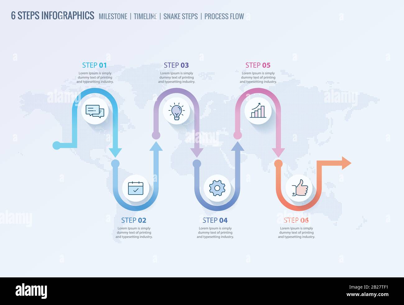 6 Schritte Formen von Elementen mit Schritten, Roadmap, Optionen ...