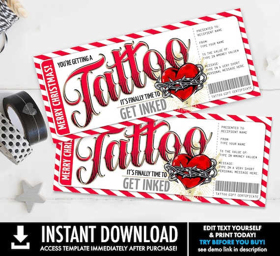 Tattoo Weihnachten Geschenkgutschein Herz Design, Get Inked Geschenkkarte Gutschein Selbst bearbeiten mit CORJL INSTANT DOWNLOAD Printable - Etsy Schweiz