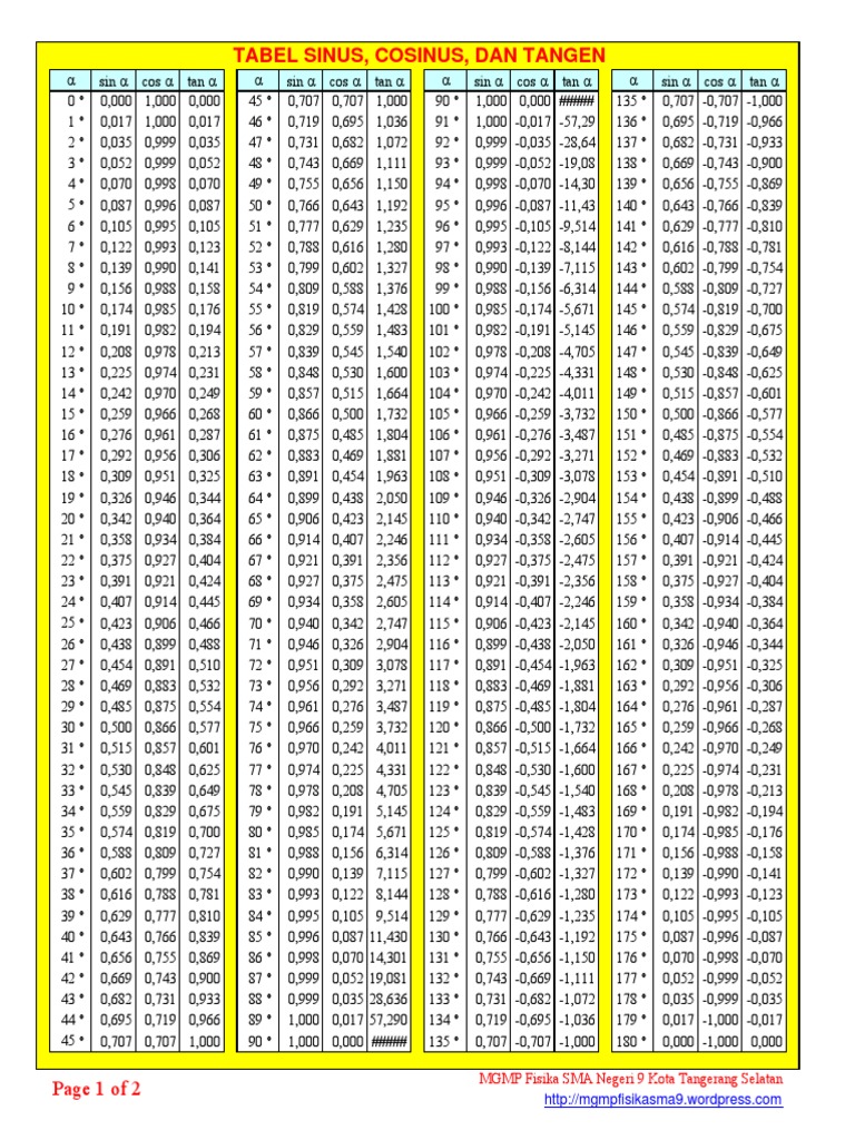 Tabel Sinus Cosinus Tangen PDF | PDF | Formule 1 | Compétition ...