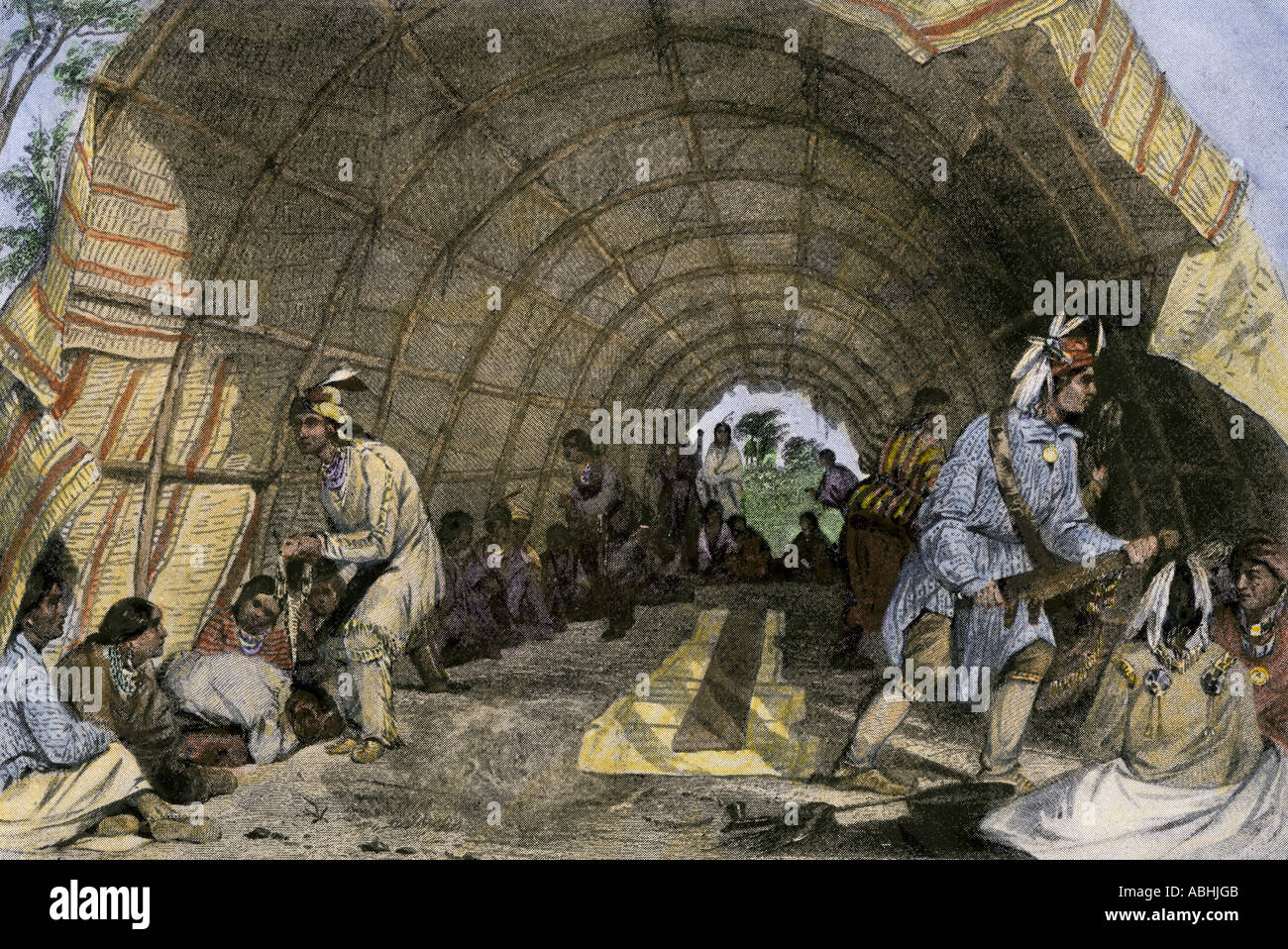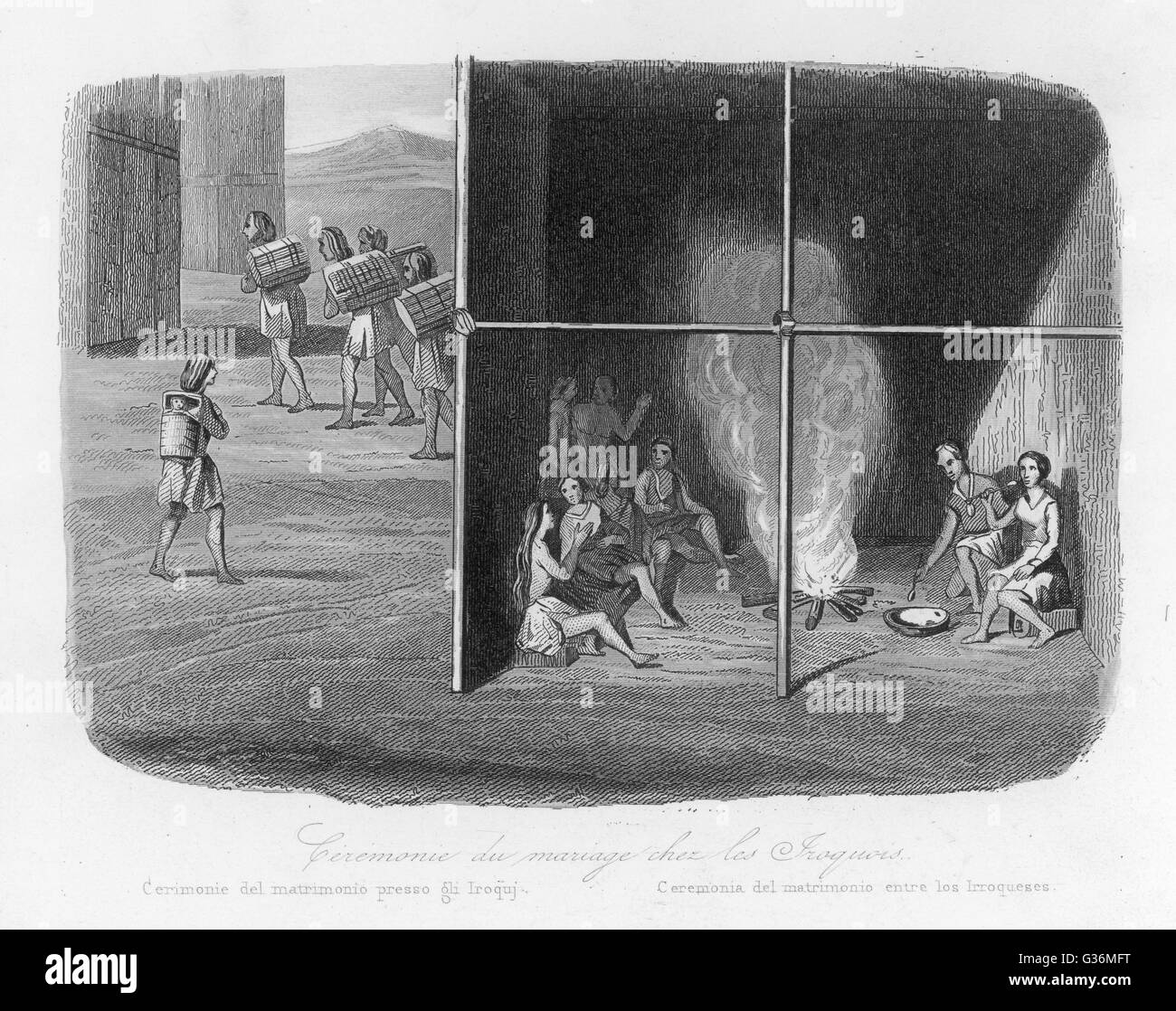 Iroquais Langhaus, Illustration. Die Irokesen (auch bekannt ...