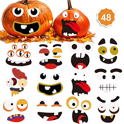 Whaline 64 Stück Halloween Kürbis Aufkleber, 14 lustige und klassische Kürbisausdrücke Aufkleber für Kürbisse Squashes, machen Sie Ihre eigenen Jack-O-Lantern Gesicht Party Dekoration: Amazon.de: Spielzeug