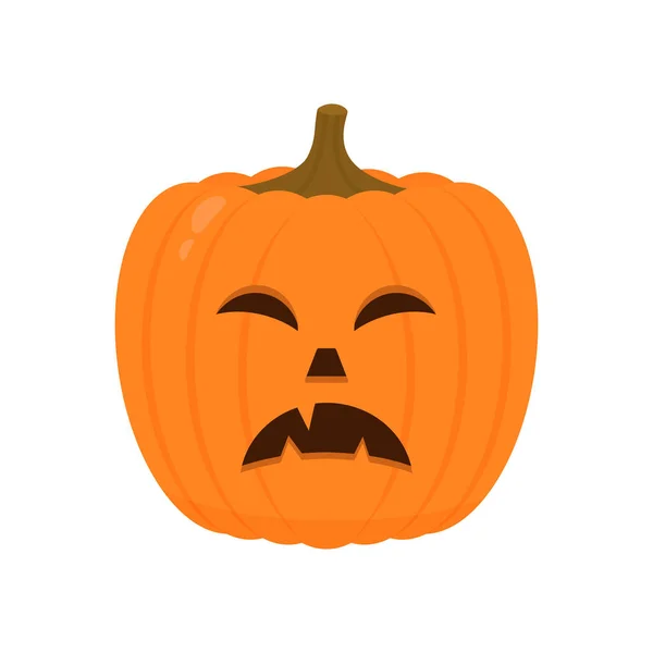 A bright illustration with an image of an elongated orange pumpkin with a frightening emotion. Pumpkin is a symbol of the Halloween holiday. The Jack-o lantern is a symbol of All Saints