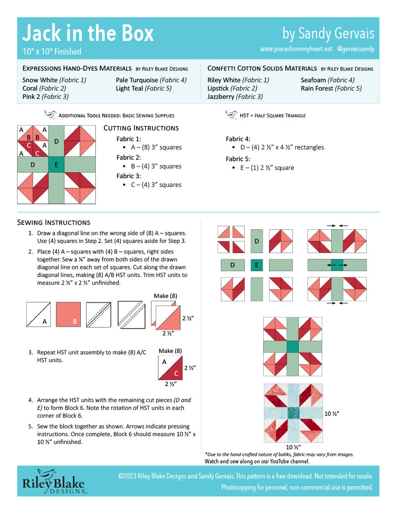 RBD 2023 Block 6 - Jack in the Box Free Pattern Download – K&K Logo Designs, Ltd & Fabric Supplies