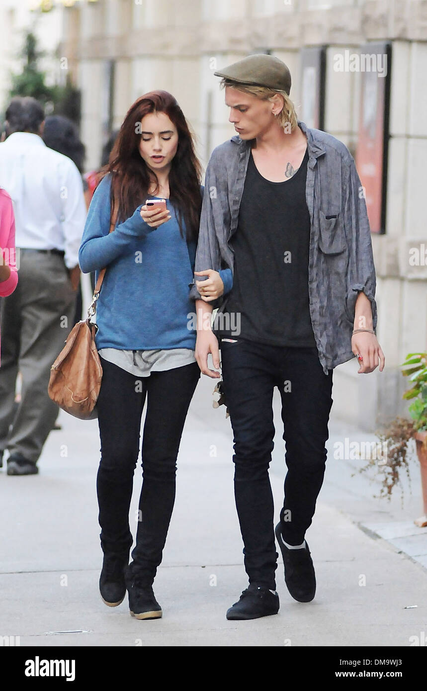 Lily Collins und Jamie Campbell Bower heraus für einen Spaziergang zusammen in Toronto-Toronto, Kanada - 16.09.12 Featuring: Lily Collins und Jamie Campbell Bower wo: Kanada wenn: 16 Sep 2012 Stockfotografie - Alamy