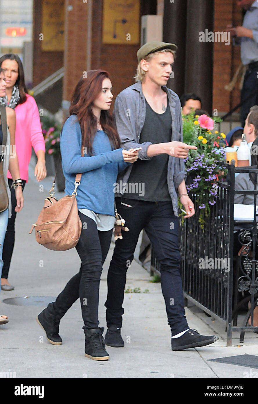 Lily Collins und Jamie Campbell Bower unterwegs in Toronto, Toronto, Kanada - 14.08.12 Stockfotografie - Alamy