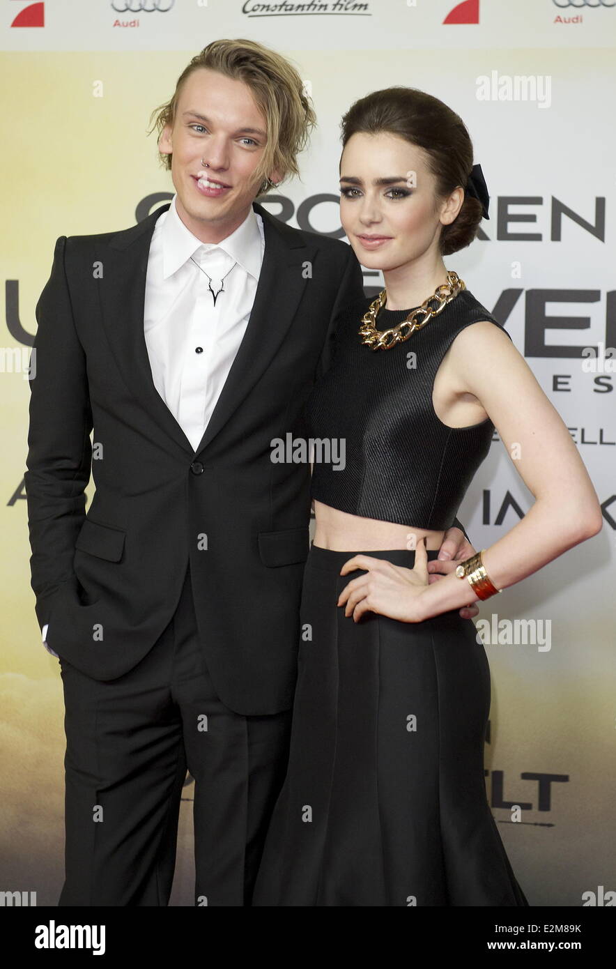 Lily Collins und Jamie Campbell Bower in Chroniken der Unterwelten - City of Bones Premiere im CineStar Kino Sony C Stockfotografie - Alamy