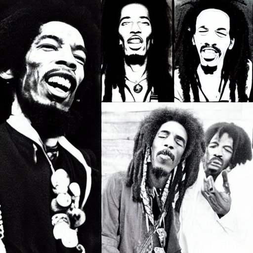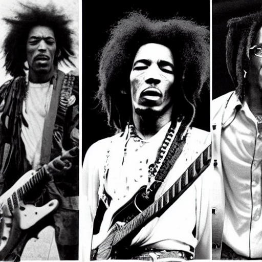 Prompthunt: Jimi Hendrix, Malcom X and Bob Marley