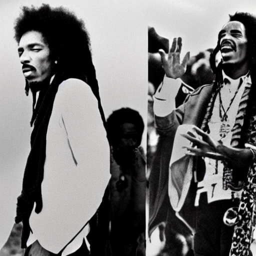 Live performance of bob marley and jimi hendrix on Craiyon