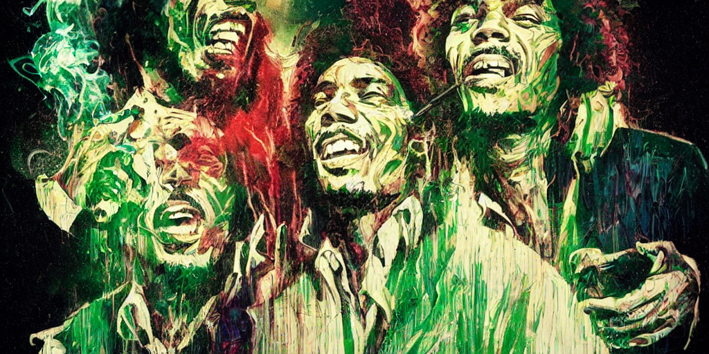 Prompthunt: Bob Marley and Jimi Hendrix smoking herb, very ...