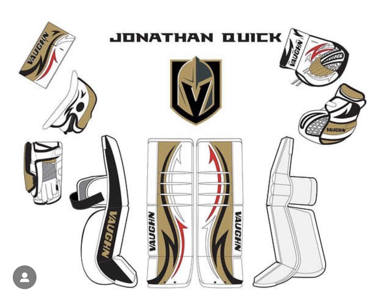 Jesse Granger on X: "Jonathan Quick had some gold added to his silver and white pads ahead of his Golden Knights debut today. Here's what his new Vegas setup will look like