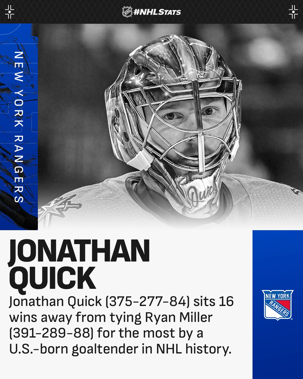 NHL Public Relations on X: "Jonathan Quick, a three-time #StanleyCup champion, will continue his storied career in the "Big Apple" after signing with the @NYRangers. #NHLStats #NHLFreeAgency More on @NHLDotcom: https://t.co/QI0Qsy3Nsx https://t.co ...