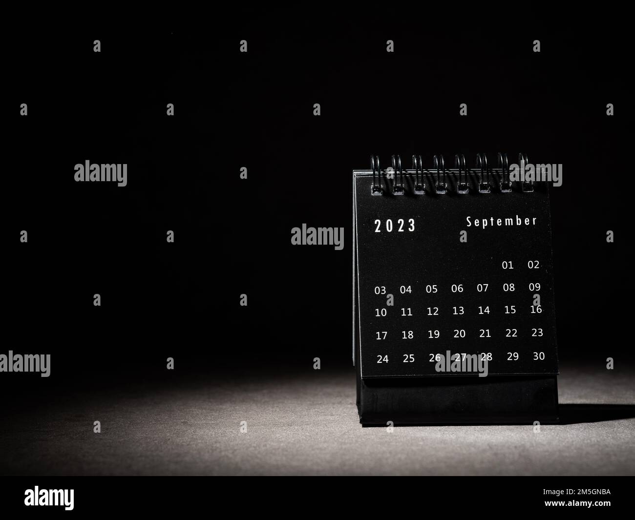 Kalender vom 2023. September auf schwarzem Hintergrund ...