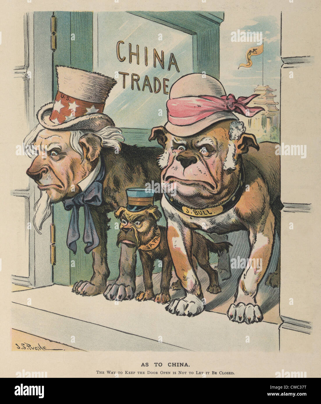 WIE IN CHINA. Karikatur zeigt Uncle Sam John Bull und Japan als Hunde bewachen eine offene Tür "China Handel". Europäischen Mächte Stockfotografie - Alamy