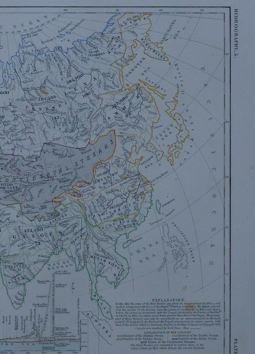 1850 HAND COLOURED MAP RIVER SYSTEMS EUROPE & ASIA VOLGA GANGES DANUBE CLYDE | eBay