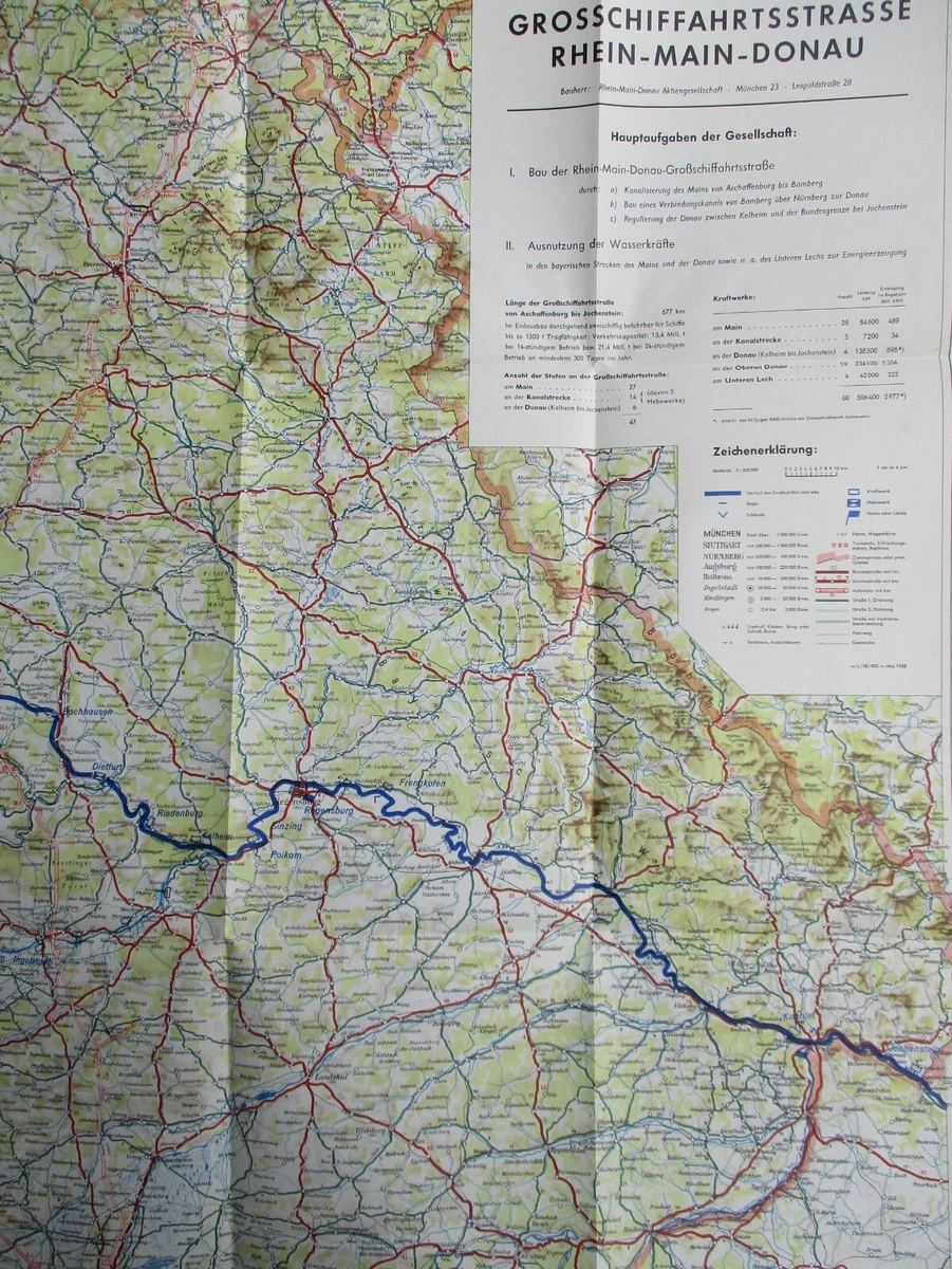 Karte DER EUROPA-KANAL RHEIN-MAIN-DONAU 1958 Landkarte | eBay