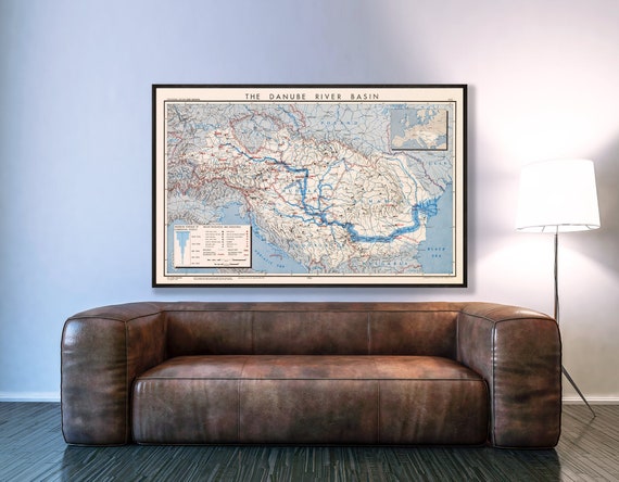 Das Donaueinzugsgebiet, Vintage Karte der Donau, Donau Karte, Donau Wandkunst, Donau Geschenke. - Etsy.de