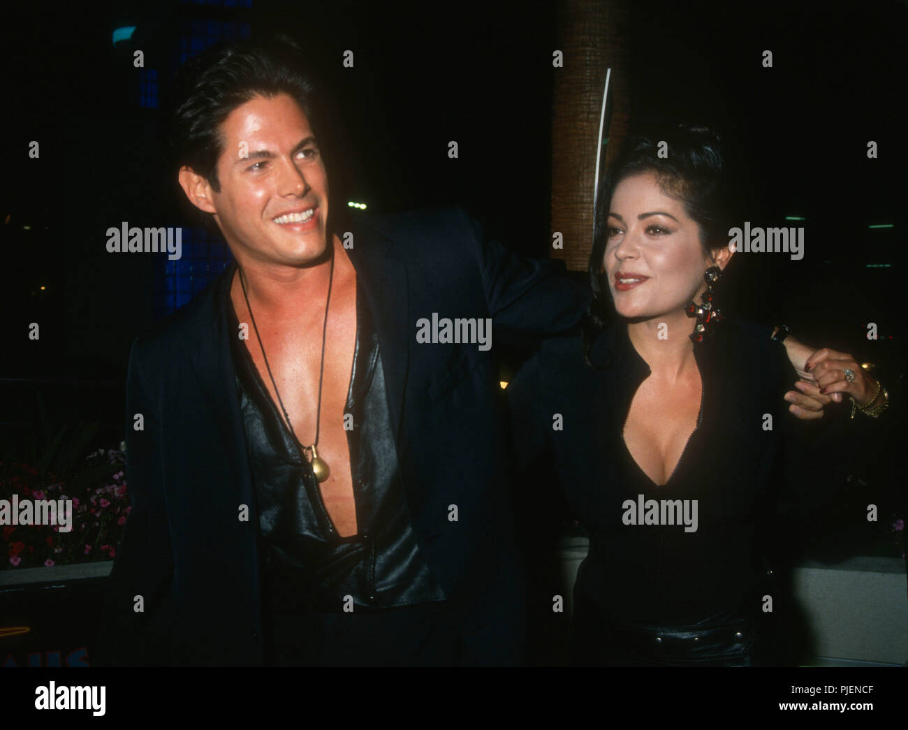 HOLLYWOOD, CA - SEPTEMBER 10: (L-R) Actor Kevin Bernhardt and wife singer/actress Apollonia Kotero attend the 'Hellraiser III: Hell On Earth' Premiere on September 10, 1992 at Hollywood Galaxy Theatre in Hollywood,