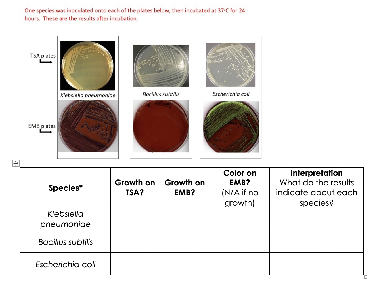 Solved Part II: Record the results of the EMB Plate Bacteria | Chegg.com