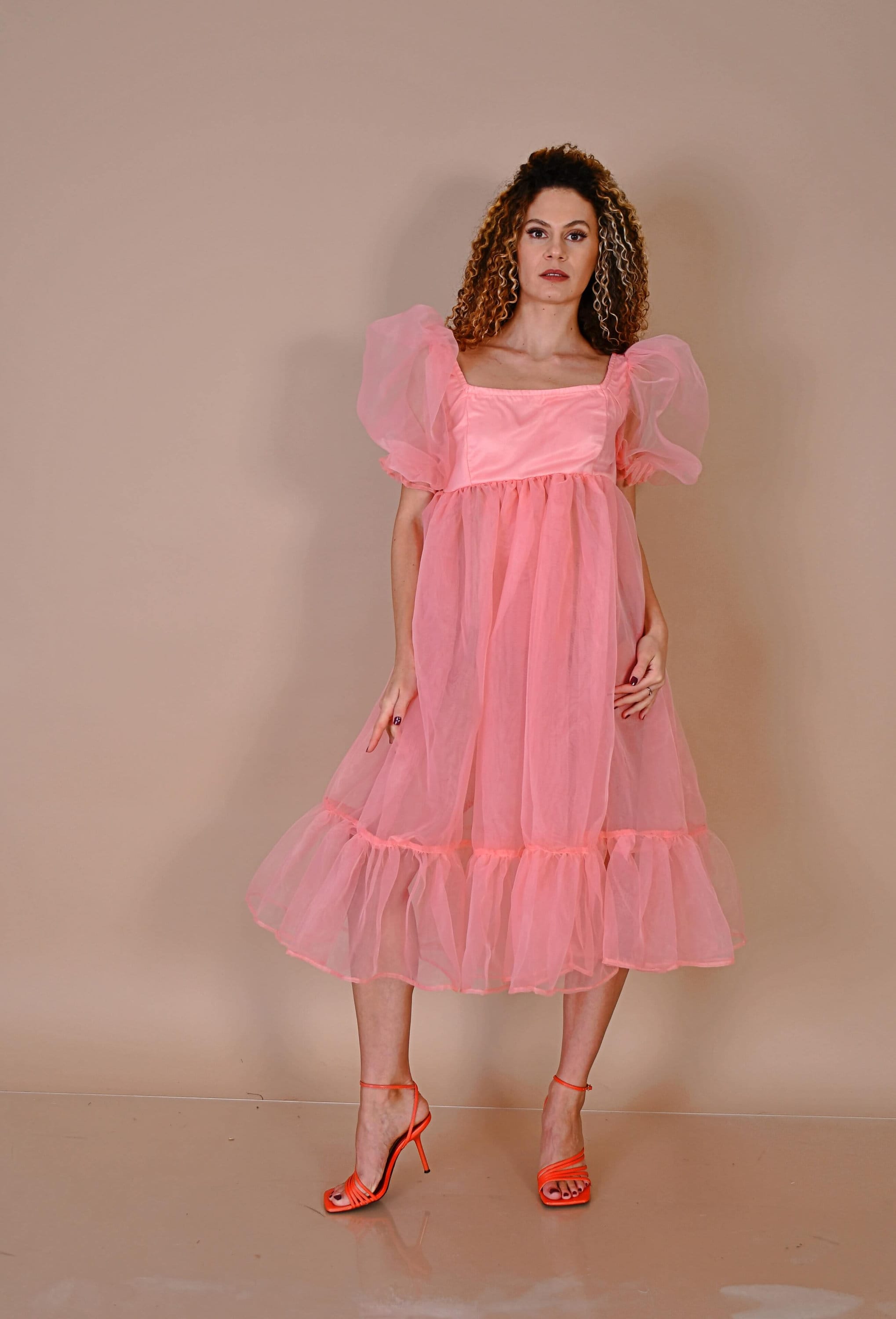 Minikleid aus transparentem Organza mit Puffärmeln - Cider