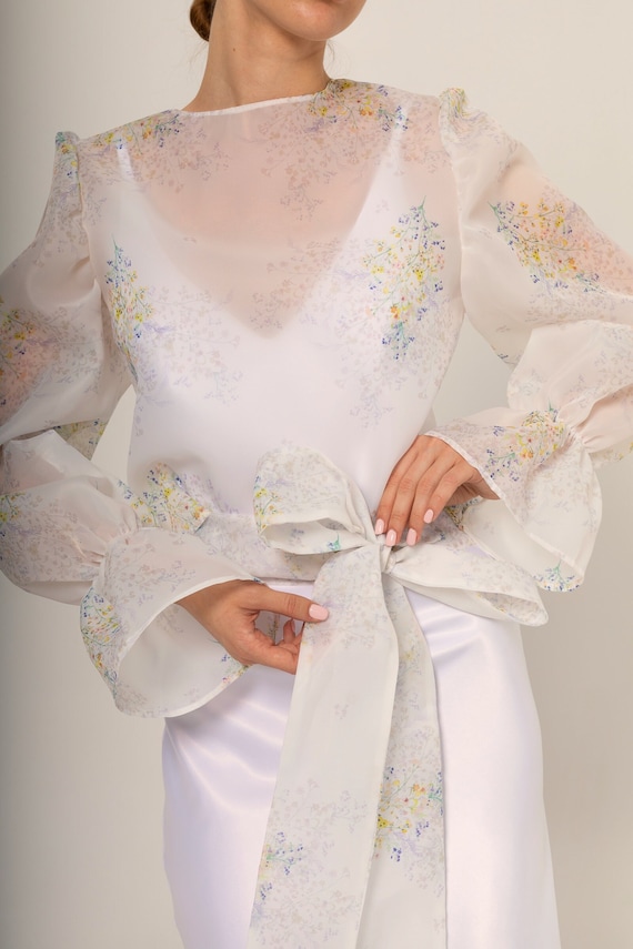 Classic Organza Jacket Transparent Jacket Wrap Organza Blazer Long Bishop Sleeve See Through White Blouse - Etsy Israel