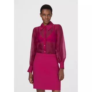Bluse aus Seiden-Stretch-Crêpe mit Ärmeln aus transparentem Organza