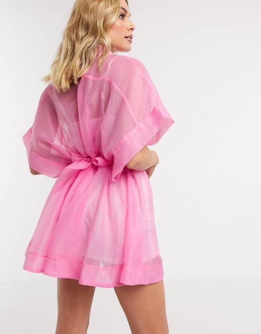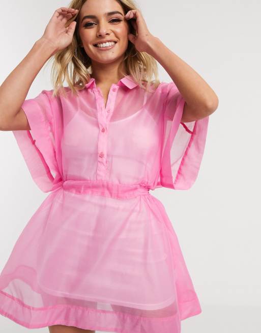 Femme Luxe – Hemdkleid aus transparentem Organza in Rosa mit Gürtel | ASOS