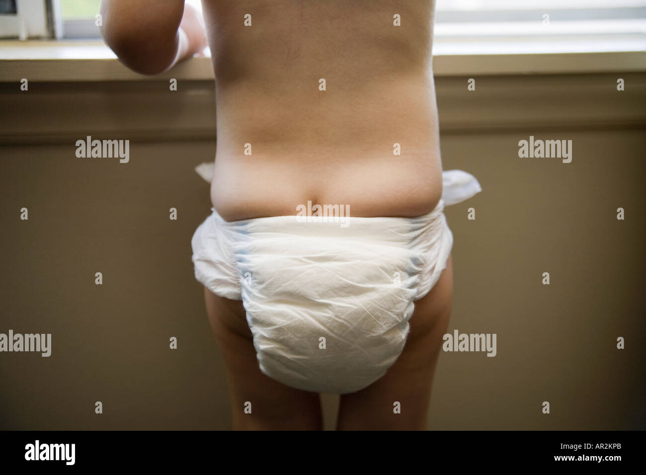 Kleinkind tragen Windel und suchen aus Fenster Stockfotografie - Alamy
