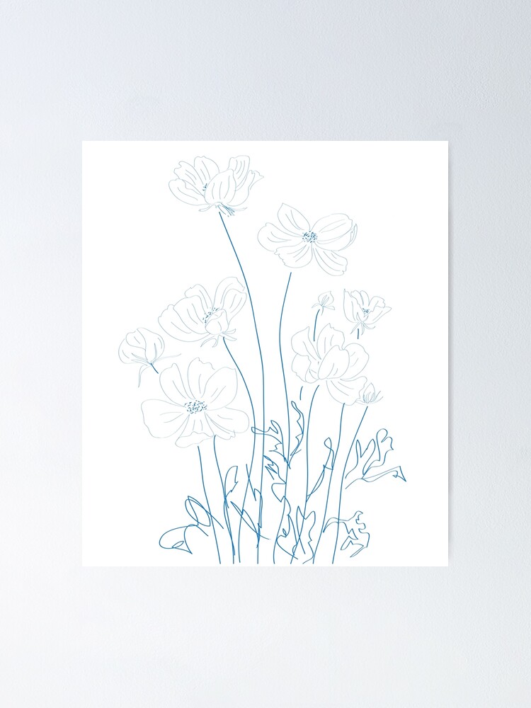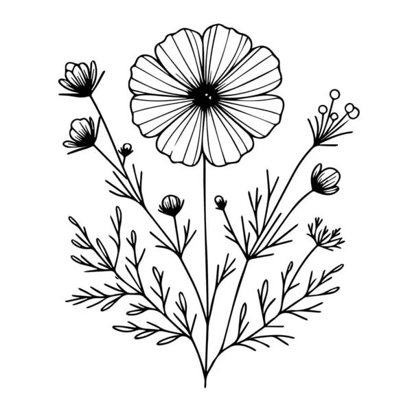 Hand gezeichnet Linie Kunst botanisch Illustration, Kosmos Blume ...