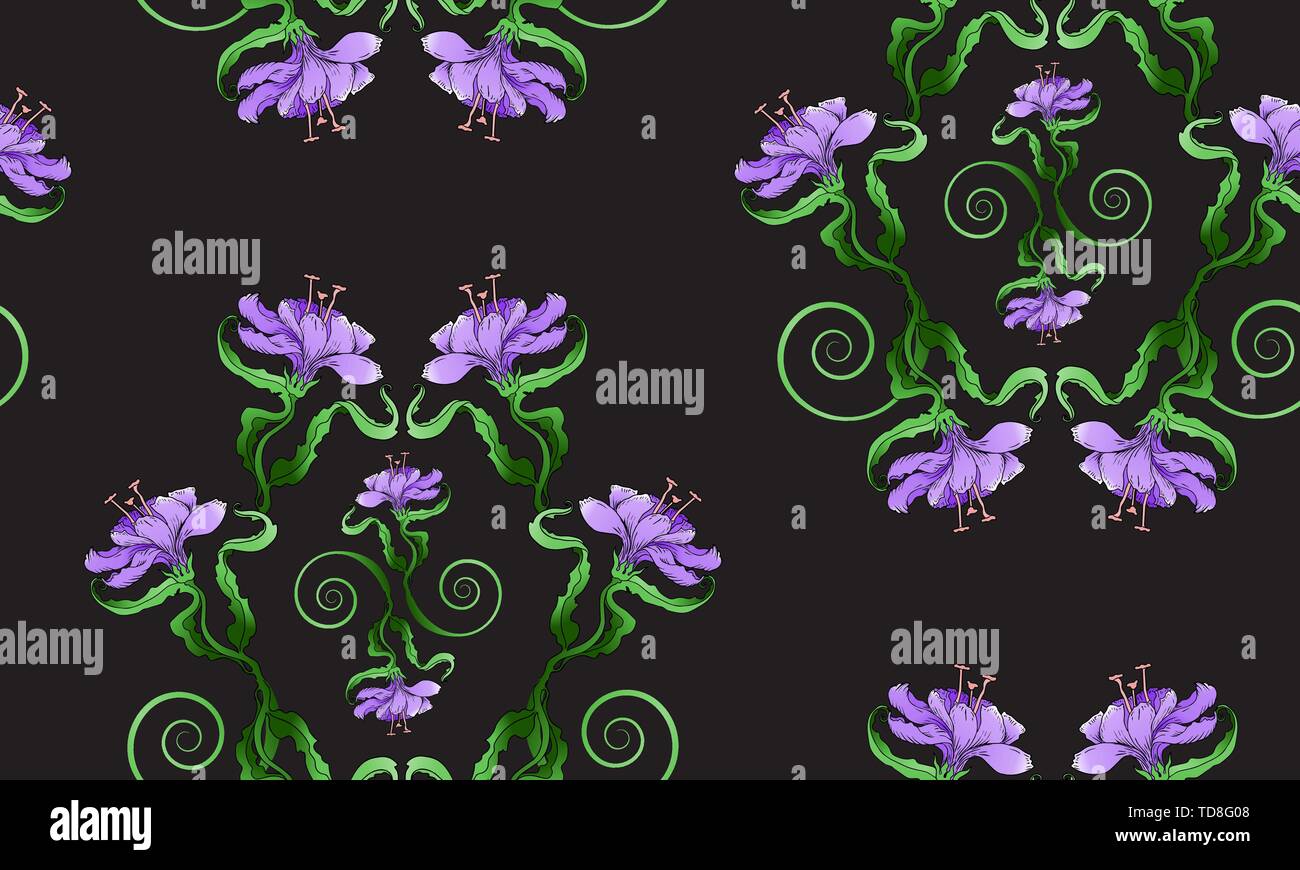 Lily nahtlose Muster, auf schwarzem Hintergrund in leicht violette ...
