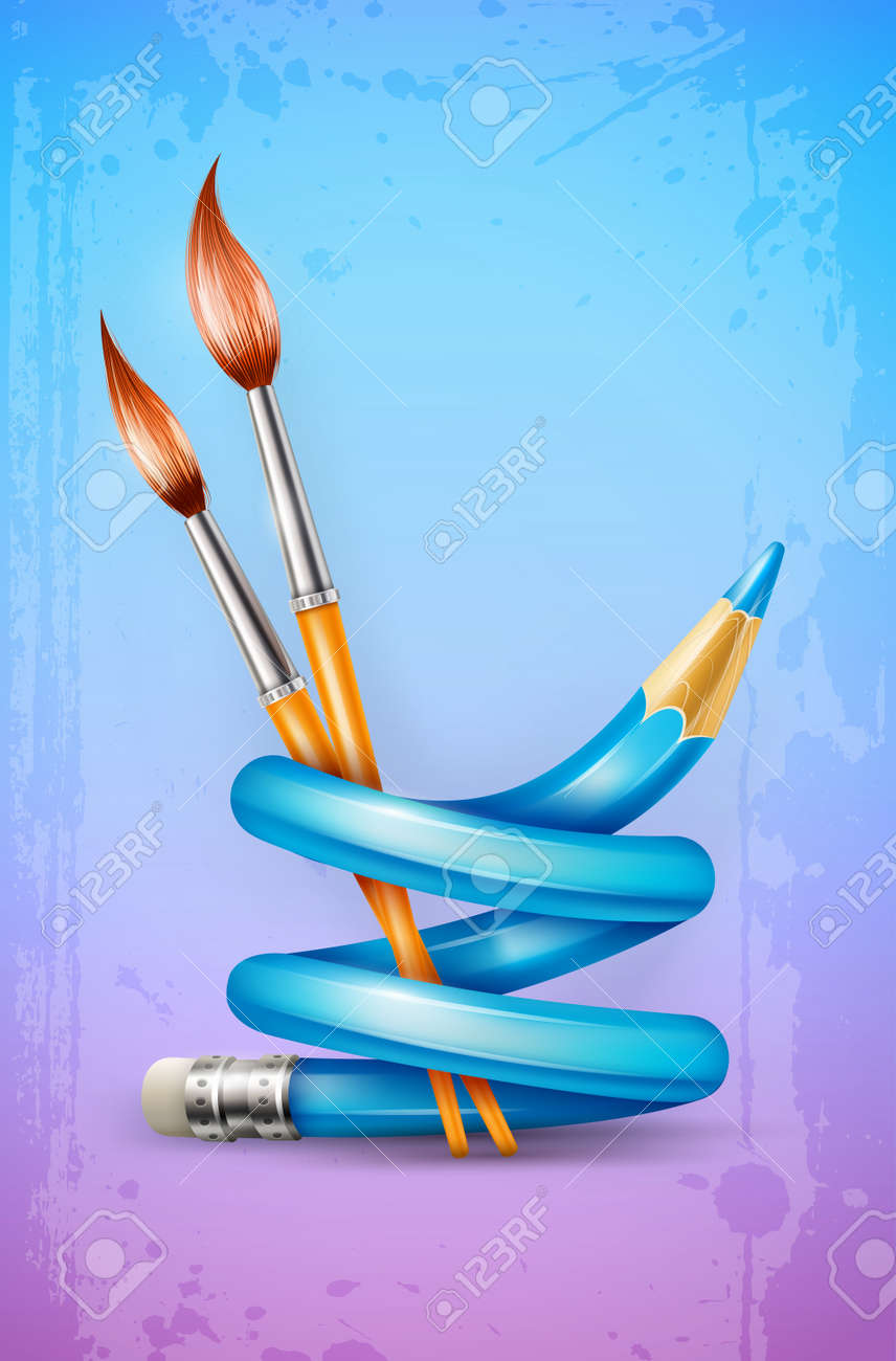 Kreative Kunst-Design-Konzept Mit Twisted Bleistift Und Pinsel ...