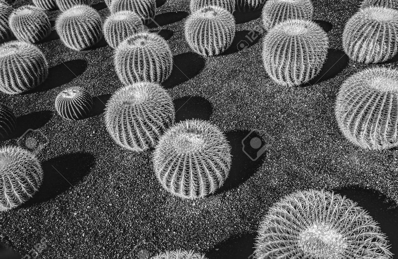 Ein Haufen Von Echinocactus Grusonii, Einem Kaktus, Der Typisch ...