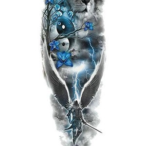 Löwe Yin Yang Blumen Baum Krieger mit Flügeln Temporäre Ärmel Tattoos - Etsy.de