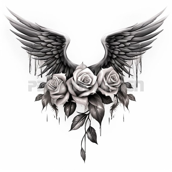 Flügel mit Rosen Tattoo Design Weißer Hintergrund - Etsy Schweiz