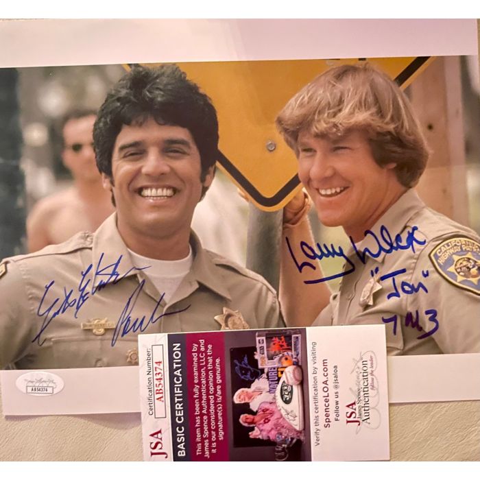 Erik Estrada & Larry Wilcox dual signed CHiPs 8X10 Photo- JSA Witnessed