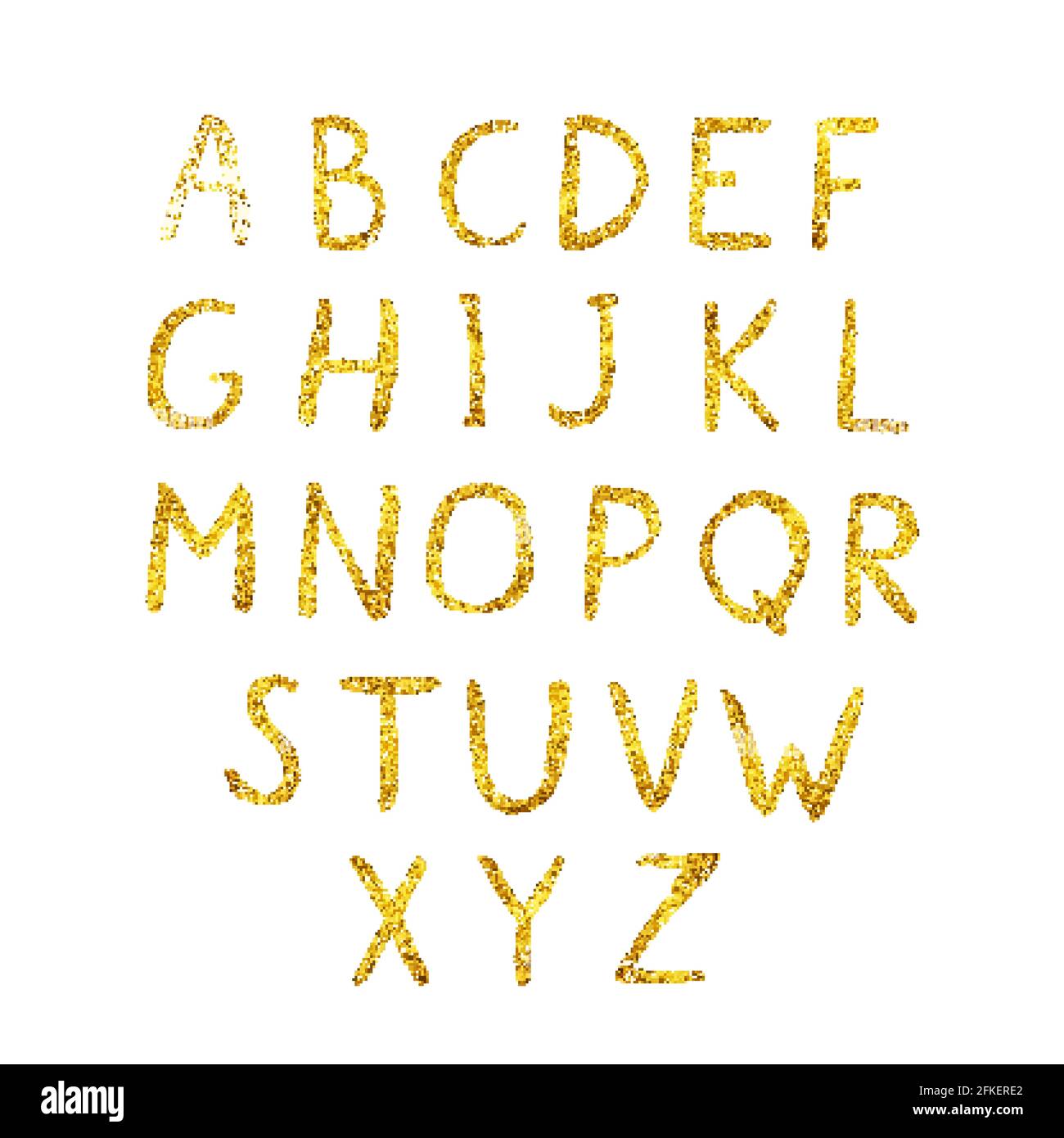 Gold Glitter glänzend Vektor-Alphabet. Handgezeichnete goldene Buchstaben A-Z isoliert auf Weiß. Moderne Schriftart Sans serif. Lateinische Großbuchstaben von Handschriftensymbolen. Einfach Stock-Vektorgrafik - Alamy