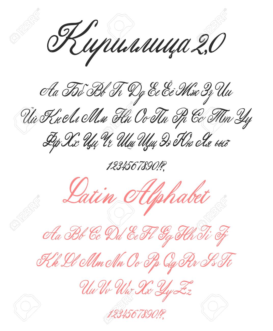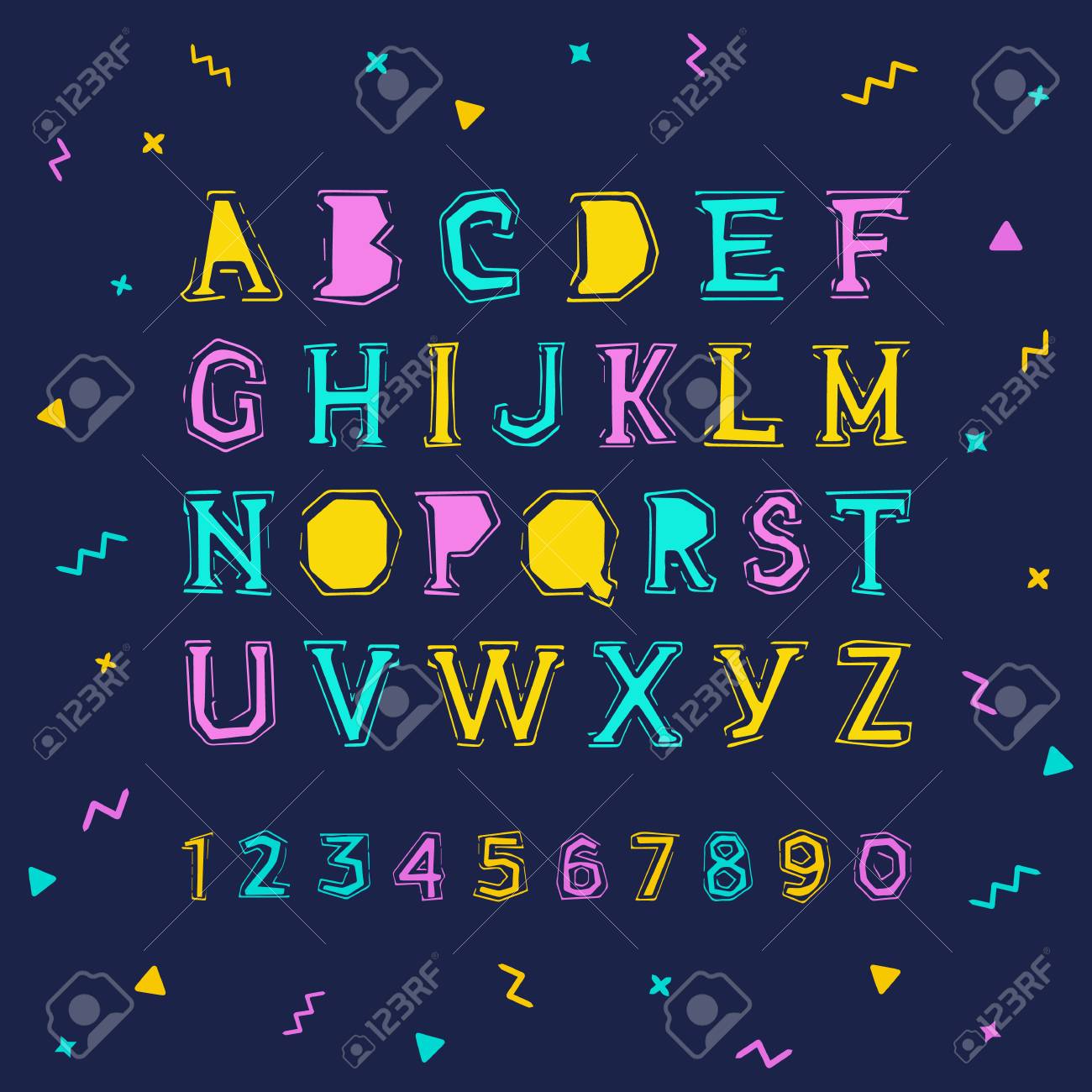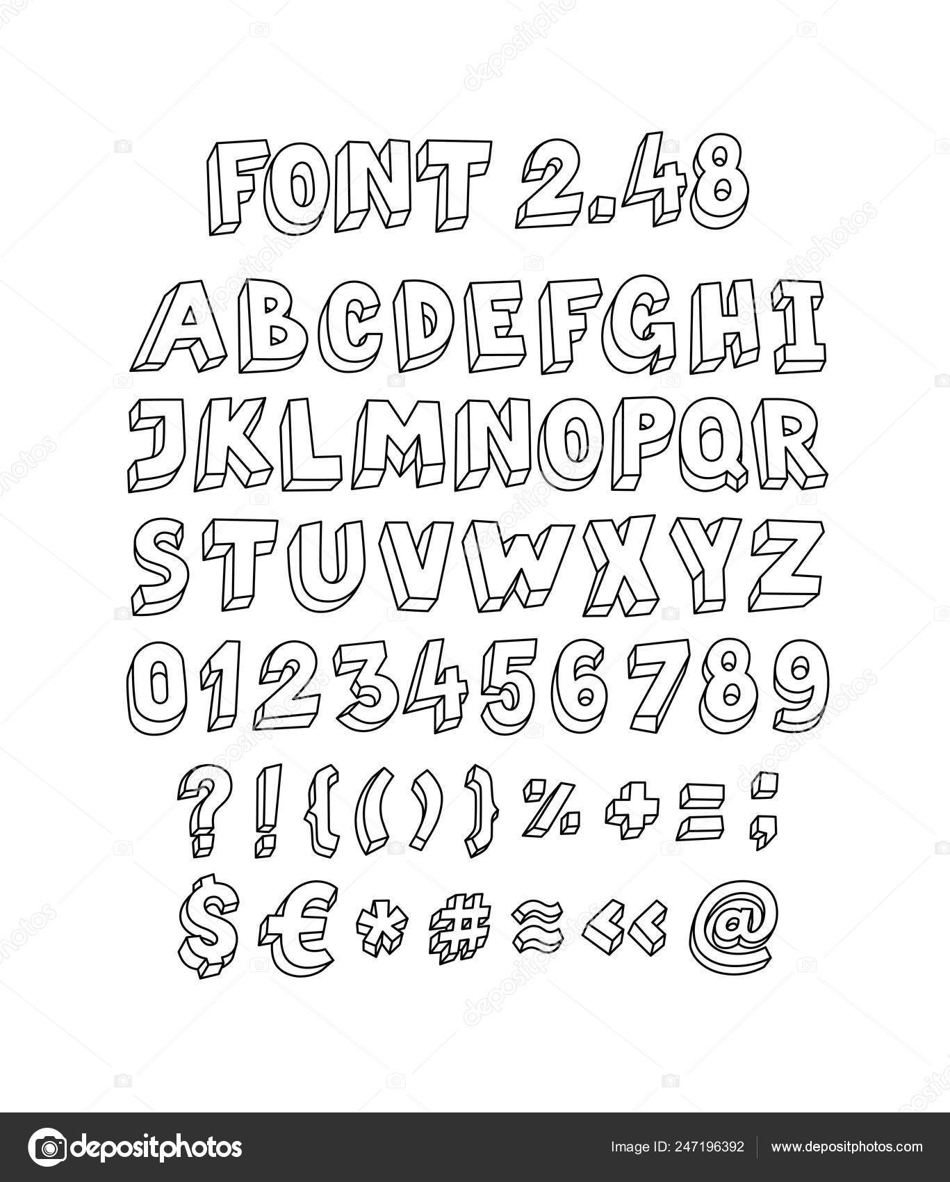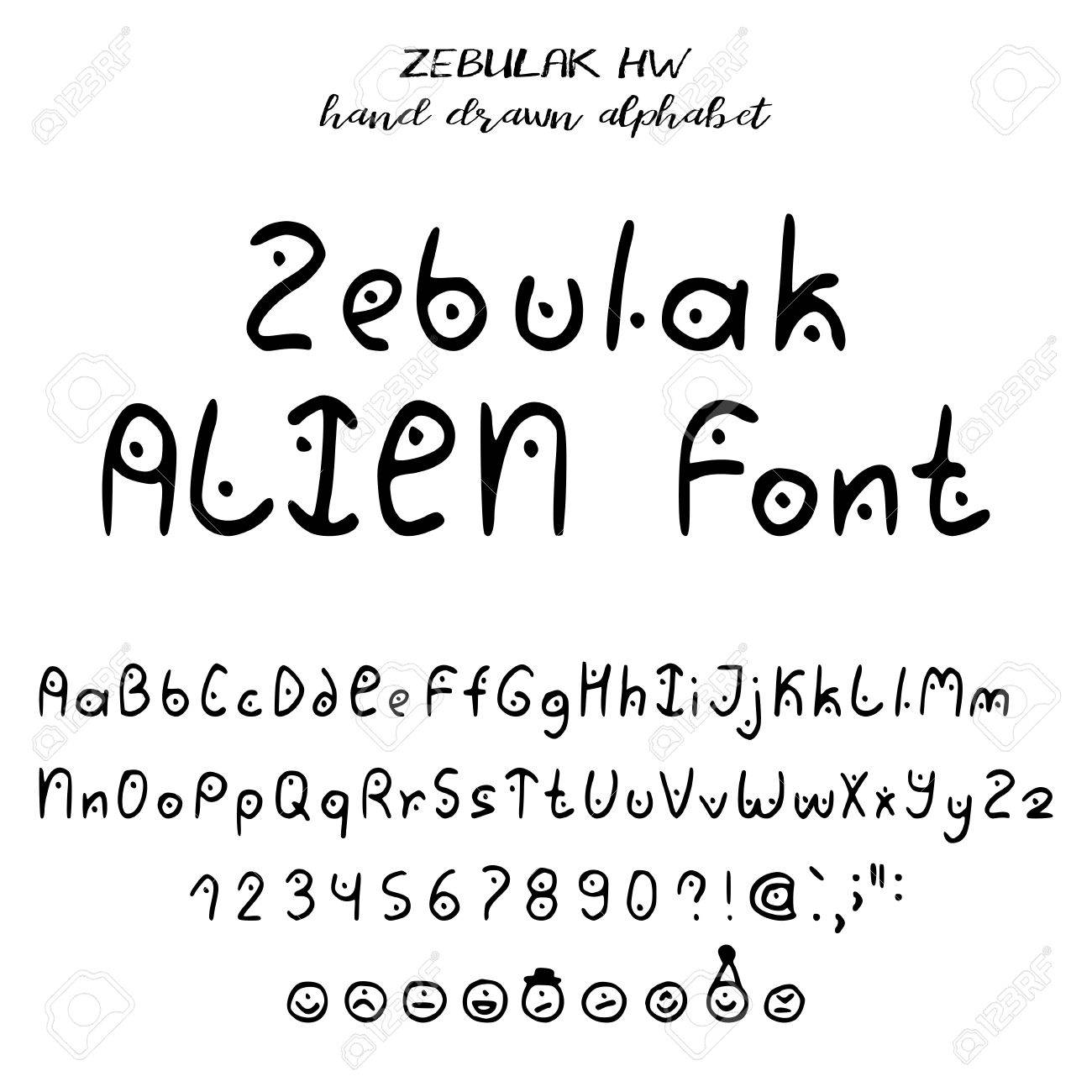 Hand Gezeichnetes Alphabet, Geschriebener Schriftart Im Stil Der Ausländischen Beschriftung: Obere Und Niedrige Lateinische Buchstaben, Zahlen, Einige Interpunktion Und Emoticons Von Ausländern. Vektor-Illustration Lizenzfrei nutzbare SVG ...