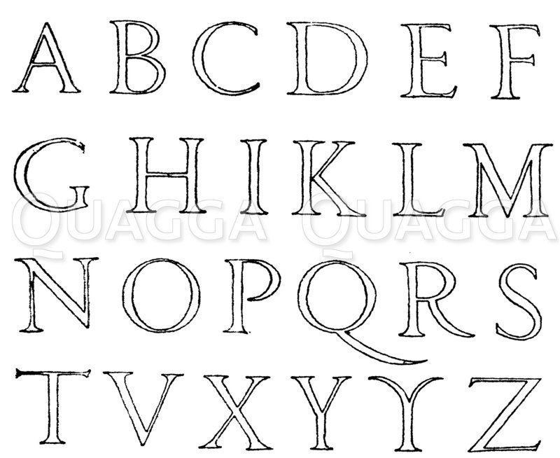 Lateinische Renaissanceschrift: Renaissancealphabet in lateinischer Schrift aus dem Jahr 1547. Nach dem Schriftbuch des Johann von Yciar aus Durango in Biscaya. - Quagga Illustrations