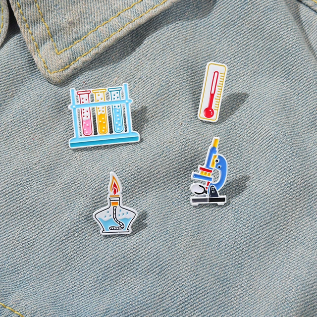 Chemie Molekül Emaille Pin Benutzerdefinierte Rohr Mikroskop Becher Labor Serie Kleidung Revers Pins Abzeichen Geschenk Für