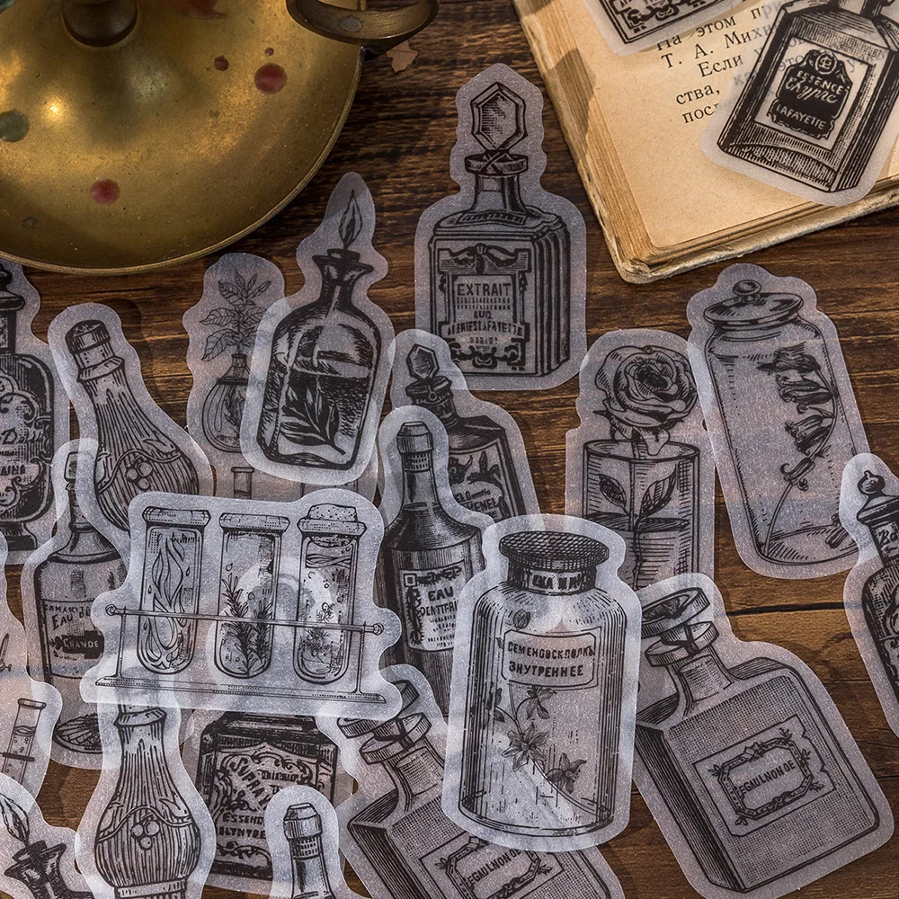 30 stücke Parfüm Labor Serie Dekorative Aufkleber Vintage Schwarz Weiß Blume Flasche Scrapbooking Material Label Tagebuch Journal Planer