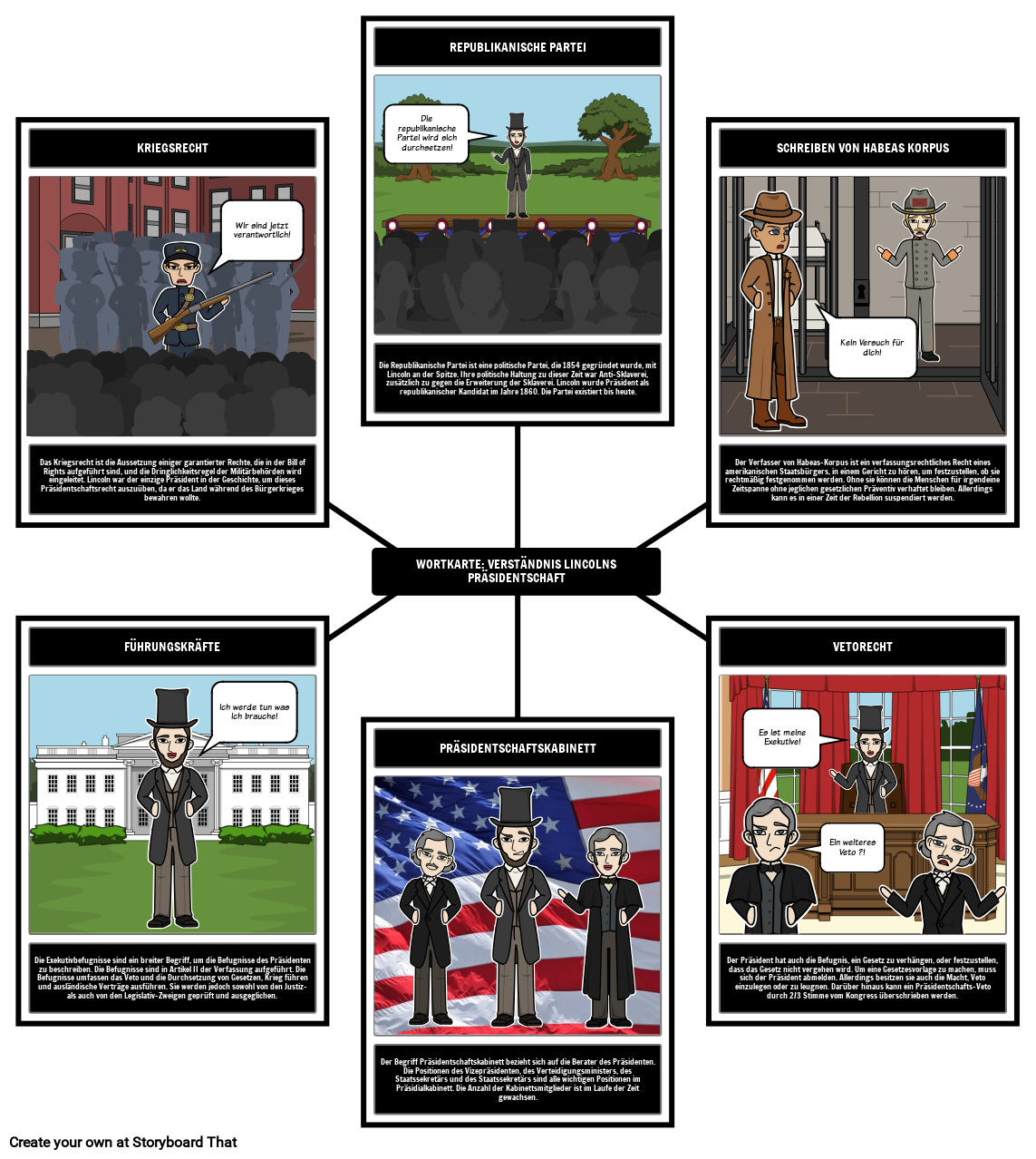 Abraham Lincoln Präsidentschaft Wort Karte Storyboard