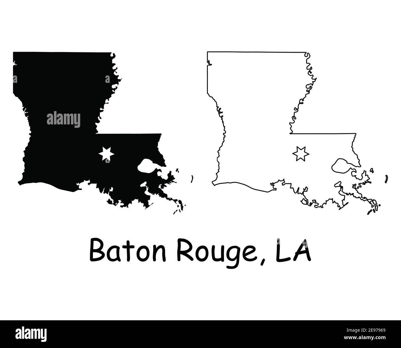 Louisiana LA State Karte USA mit Capital City Star in Baton Rouge. Schwarze Silhouette und Umriss isoliert auf weißem Hintergrund. EPS-Vektor Stock-Vektorgrafik - Alamy
