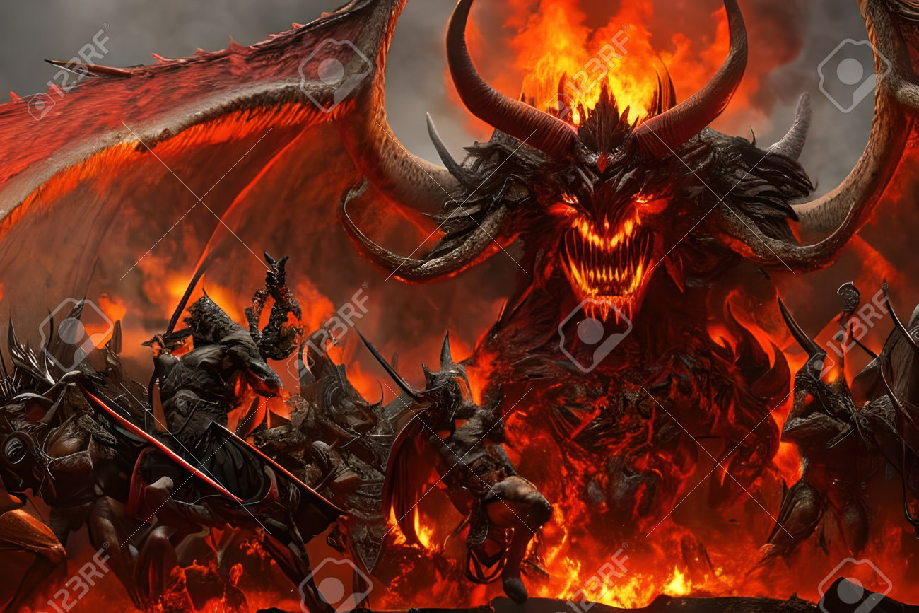 Luzifer Kämpft Mit Einer Legion Von Dämonen In Der Hölle, Die Mit Generativer KI-Technologie Geschaffen Wurden. Lizenzfreie Fotos, Bilder und Stock Fotografie. Image 199595079.