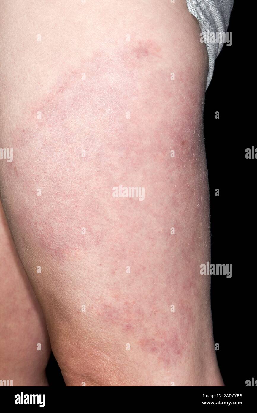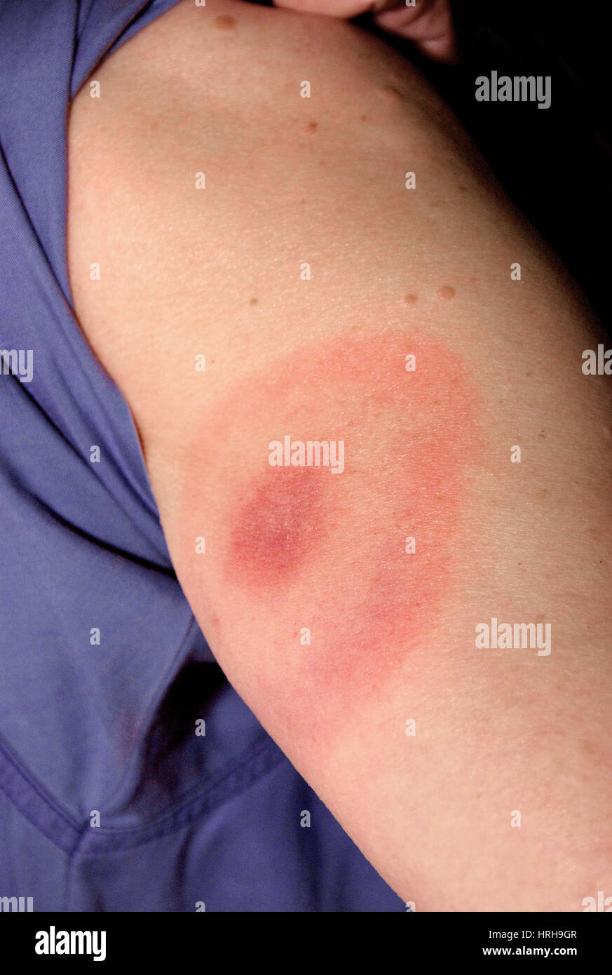 Hautausschlag in der Lyme Krankheit in eine 59-jährige Frau. Die Lyme Krankheit wird durch die spirochäte Bakterium Borrelia burgdorferi verursacht, wodurch ein Hautausschlag, Fieber, und n Stockfotografie - Alamy