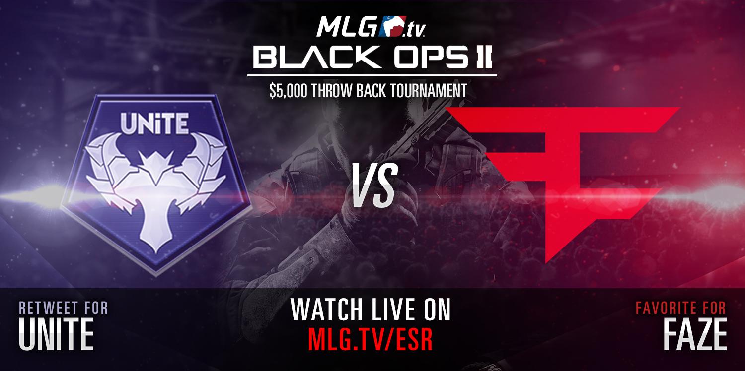 MLG on X: "The @CallofDuty: Black Ops 2 Throw Back Tournament is LIVE with UNiTE vs. FaZe! Get in here-> http://t.co/Ad938gTIeg http://t.co/hdbDwdkeP5" / X