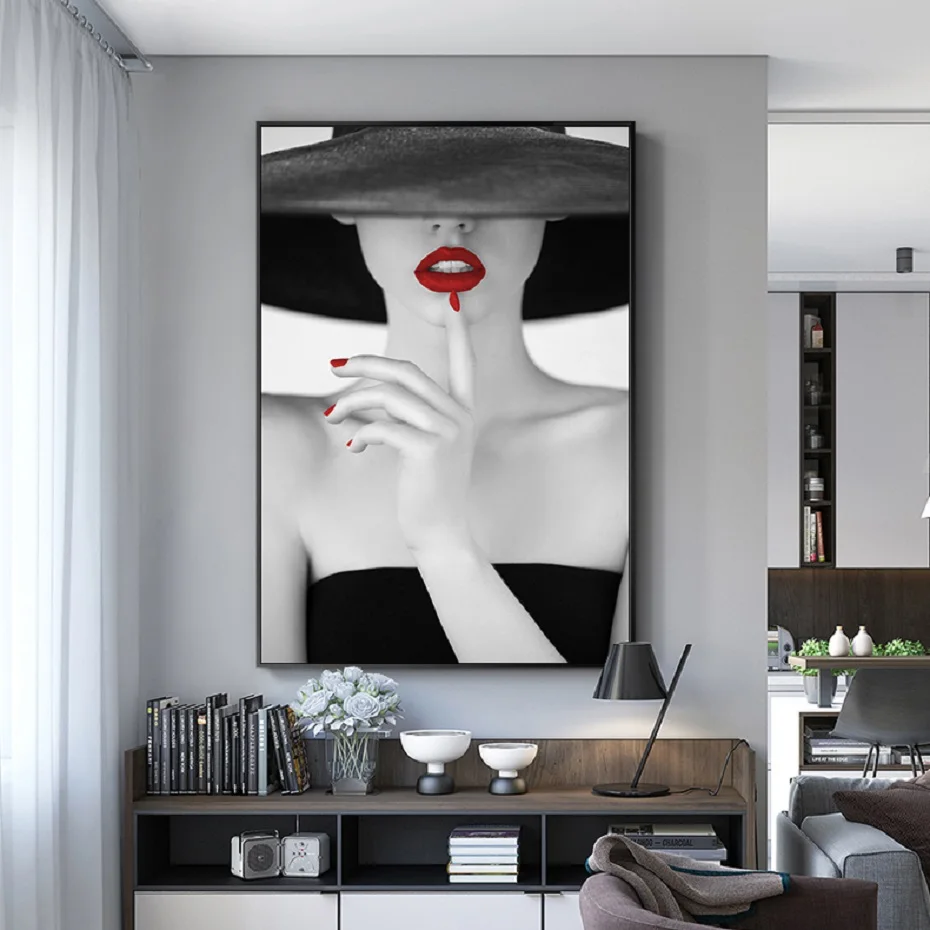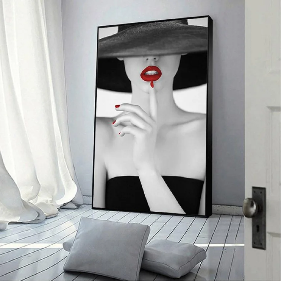 Modern Fashion Makeups Woman Red Lips Wall Art Canvas Painting Bedroom Wall Prints Posters Pictures Girl Room Home Decoration