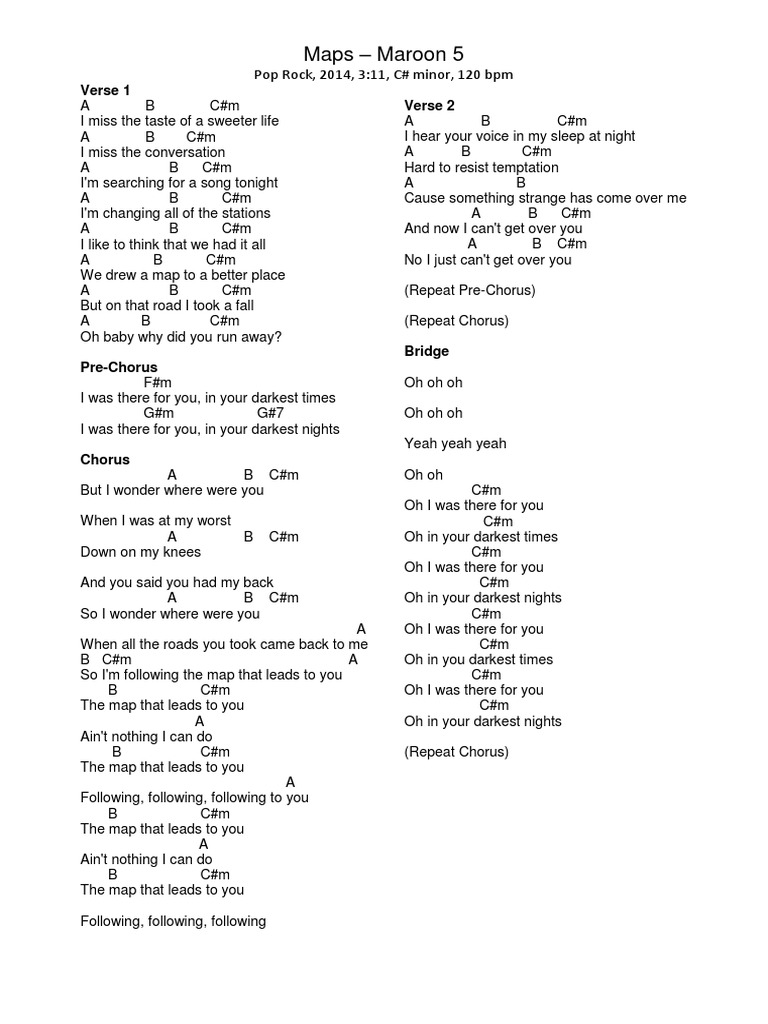Maroon 5 - Map Lyrics | PDF | Language Arts & Discipline | Art