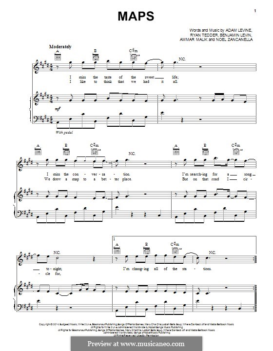 ☆ Maroon 5-Maps Sheet Music pdf, - Free Score Download ☆